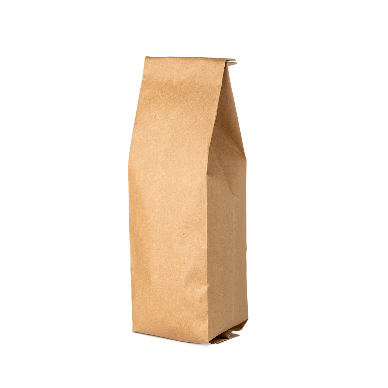 Пакет з центральним швом і бічними закладками відноситься до класичного вигляду упаковки для кави і є традиційною формою пакету для даного продукту.